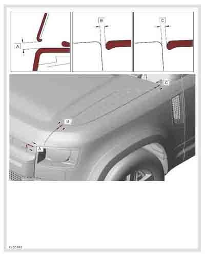 - Из официального водства по ремонту кузова LAND ROVER Defender 2 (L663) 3-DOOR (90) 2020--, в том числе размеры проемов кузова. Дополнительно приведены сведения о допустимых зазорах кузовных панелей.