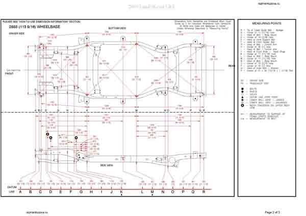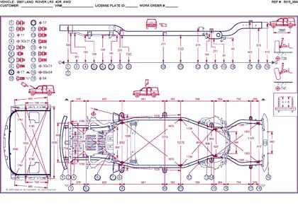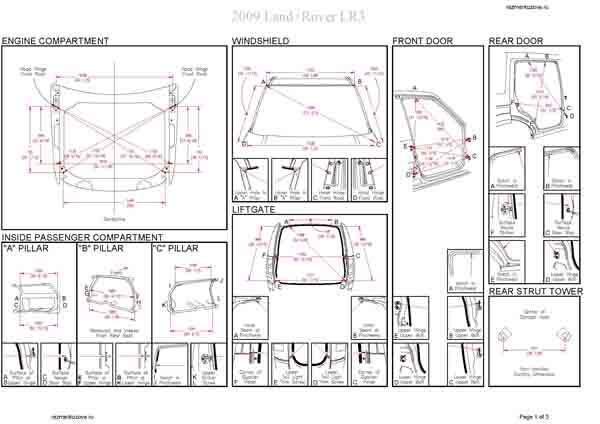 - Геометрические размеры кузова LAND ROVER Discovery 3 2004-2009, как проекционные, так и непосредственного измерения, в том числе диагональные размеры проемов кузова и контрольные точки для восстановления геометрии.