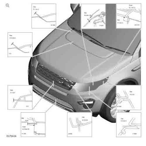 - Из официального водства по ремонту кузова LAND ROVER Discovery 5 (L462) 2016-2021--, в том числе размеры проемов кузова. Дополнительно приведены сведения о допустимых зазорах кузовных панелей.