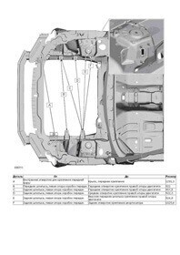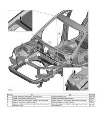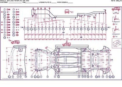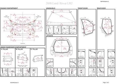 - Геометрические размеры кузова LAND ROVER LR2, как проекционные, так и непосредственного измерения, в том числе диагональные размеры проемов кузова и контрольные точки для восстановления геометрии.