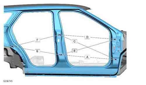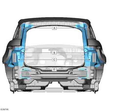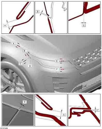 - Из официального водства по ремонту кузова LAND ROVER Range Rover Evoque 2 (L551) 2018-2023--, в том числе размеры проемов кузова. Дополнительно приведены сведения о допустимых зазорах кузовных панелей.