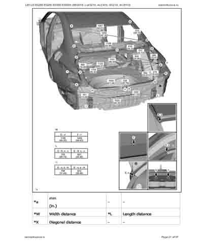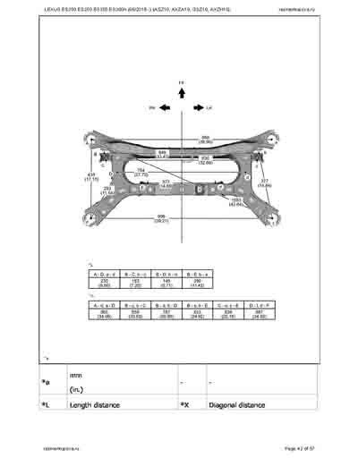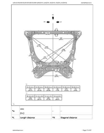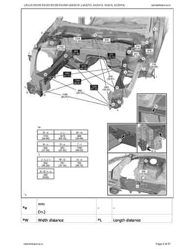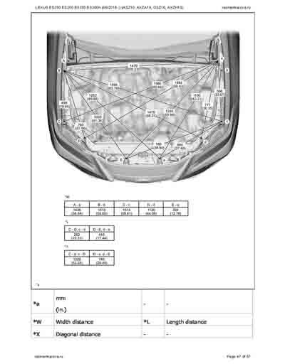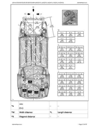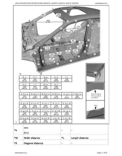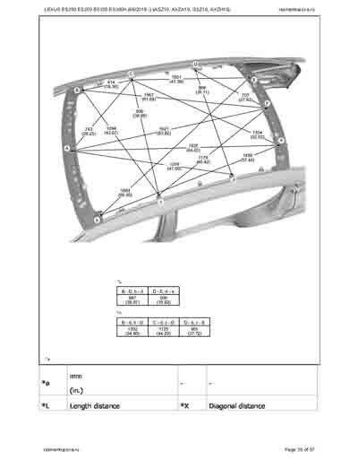 - Из официального руководства по ремонту кузова LEXUS ES200 ES250 ES350 ES300h (06/2018--) (ASZ10, AXZA10, GSZ10, AXZH10), в том числе диагональные размеры проемов.