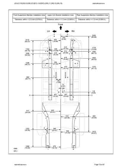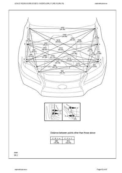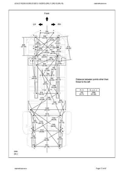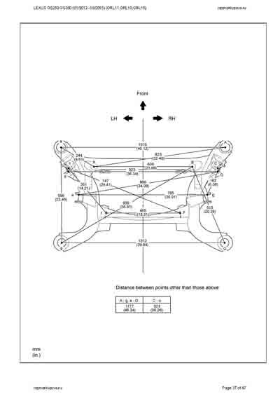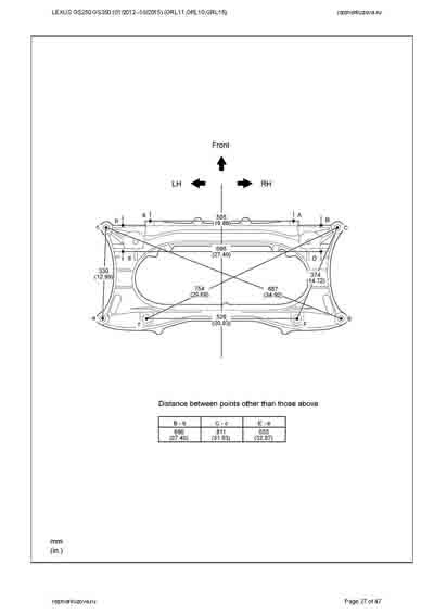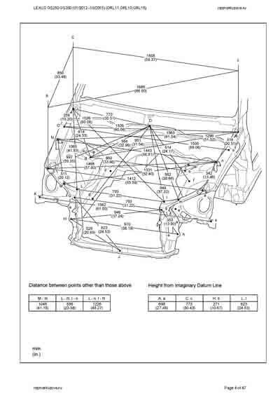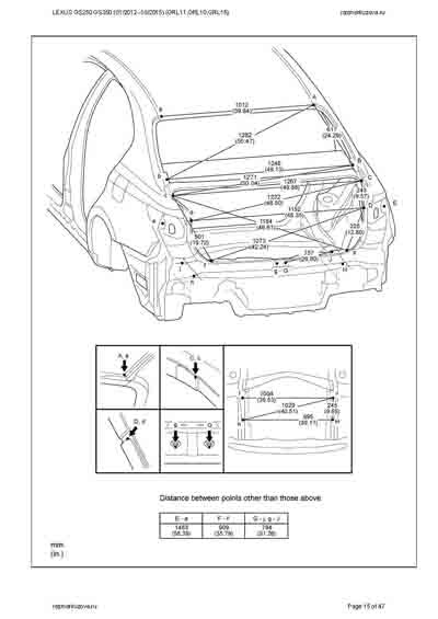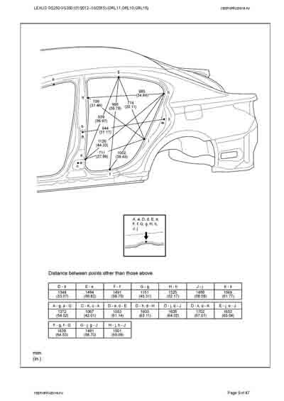 - Из официального руководства по ремонту кузова LEXUS GS250 GS350 (01/2012--10/2015) (GRL11,GRL10,GRL15), в том числе диагональные размеры проемов.