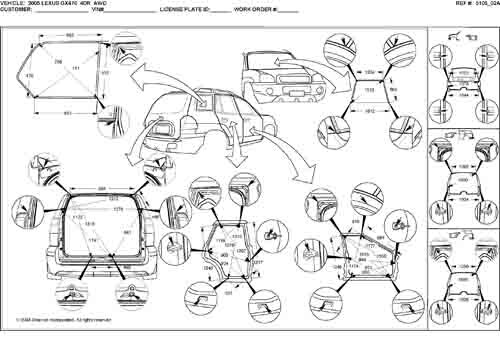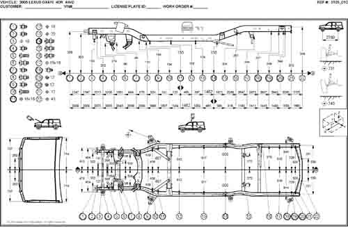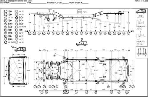 Контрольные кузовные размеры LEXUS GX470 (J120) 2002-2009: