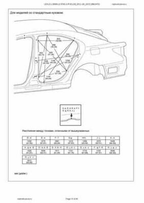 - Из официального руководства по ремонту кузова LEXUS LS600h (UVF46 UVF45) (09_2012--09_2015), в том числе диагональные размеры проемов. 45 стр. на русском языке.
