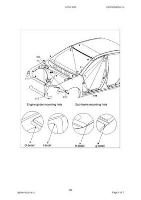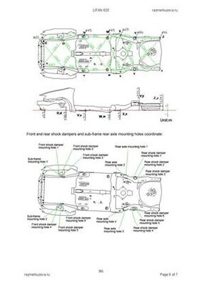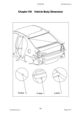 Контрольные кузовные размеры LIFAN 620, Solano 2008-2013 из официального руководства по ремонту кузова, в том числе диагональные размеры проемов.