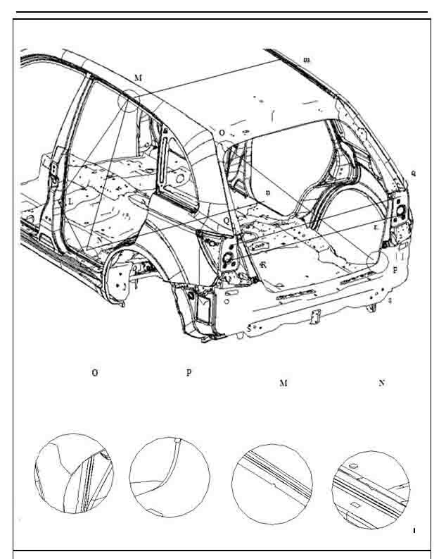Контрольные кузовные размеры LIFAN X60 2011-2015-2018 из официального руководства по ремонту кузова, в том числе диагональные размеры проемов.