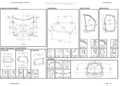 - Геометрические размеры кузова LINCOLN Navigator L 2006-2014, как проекционные, так и непосредственного измерения, в том числе диагональные размеры проемов кузова и контрольные точки для восстановления геометрии кузова.