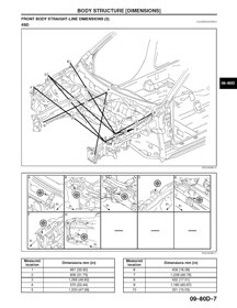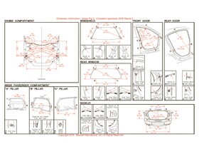 - Проекционные размеры с привязкой к стапелю. Дополнительно приведены цветные фотографии мест расположения контрольных точек на реальном автомобиле.