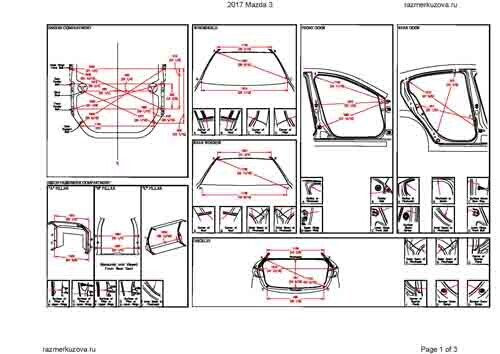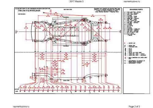 Контрольные кузовные размеры MAZDA 3 (BM) 2013-2017-2019 моделей Седан и Хэтчбек.