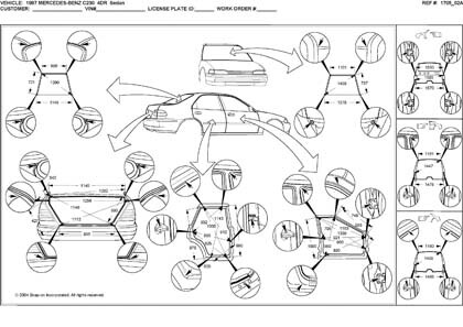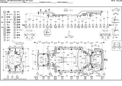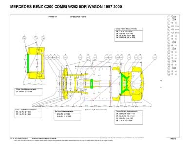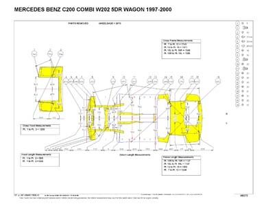 - Размеры кузова для автомобилей MERCEDES-BENZ C-Klasse (W202) 1993–2000, как проекционные, так и непосредственного измерения, в том числе диагональные размеры проемов кузова.