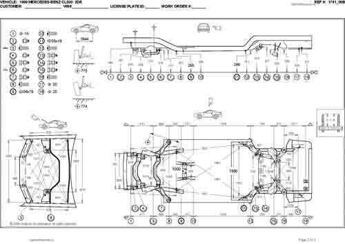 - Геометрические размеры кузова MERCEDES-BENZ CL-Klasse (C140) 1992-2000, как проекционные, так и непосредственного измерения, в том числе контрольные точки для восстановления геометрии кузова.