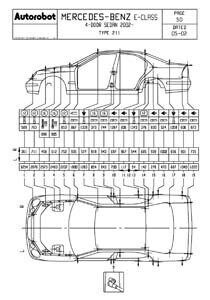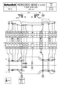 - Размеры кузова для автомобилей MERCEDES-BENZ E-Klasse (W211) 2002–2009, как проекционные, так и непосредственного измерения, в том числе диагональные размеры проемов кузова.