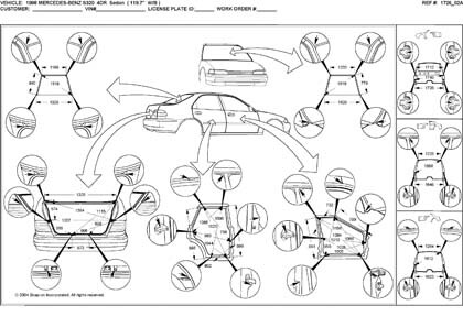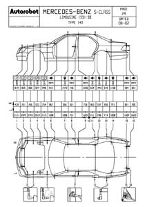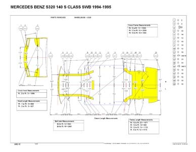 Контрольные кузовные размеры MERCEDES-BENZ S-Klasse (140) 1990–2000 в 2- и 4-х дверных кузовах со стандартной и длинной базой.