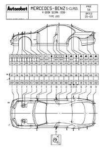 Контрольные кузовные размеры MERCEDES-BENZ S-Klasse (W220) 1998–2005 со стандартной и длинной базой.