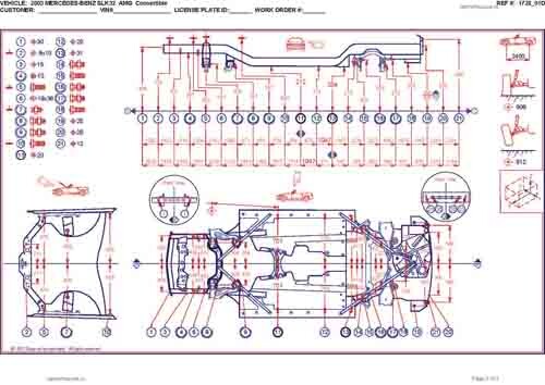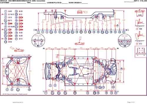 - Геометрические размеры кузова MERCEDES-BENZ SLK-Klasse (R170) 1996-2004, как проекционные, так и непосредственного измерения, в том числе диагональные размеры проемов кузова и контрольные точки для восстановления геометрии кузова.