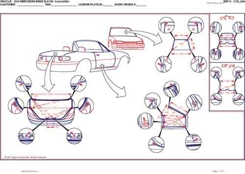 - Геометрические размеры кузова MERCEDES-BENZ SLK-Klasse (R171) 2004-2008-2011, как проекционные, так и непосредственного измерения, в том числе диагональные размеры проемов кузова и контрольные точки для восстановления геометрии кузова.