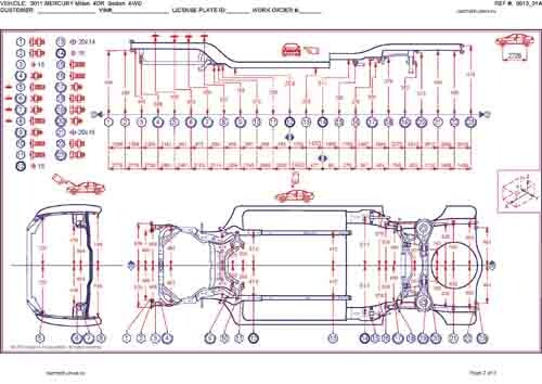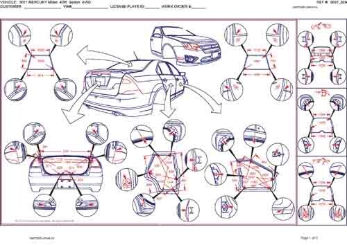 - Геометрические размеры кузова MERCURY Milan 2009-2011, как проекционные, так и непосредственного измерения, в том числе диагональные размеры проемов кузова и контрольные точки для восстановления геометрии кузова.