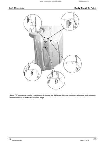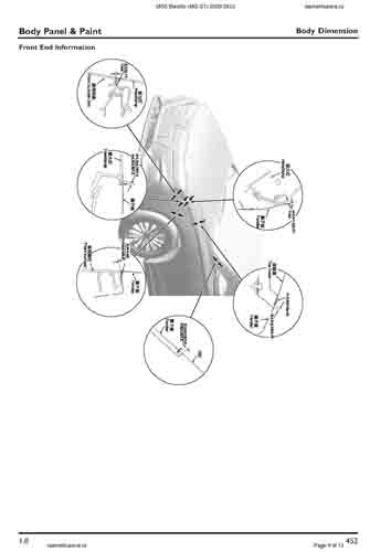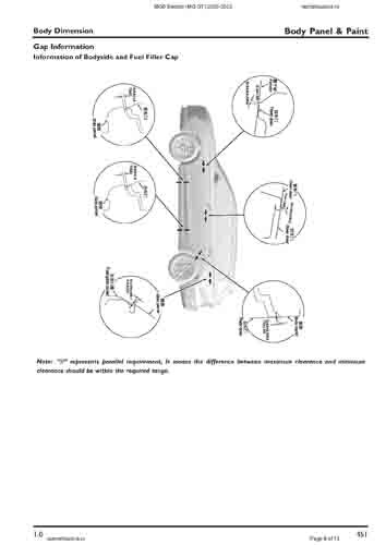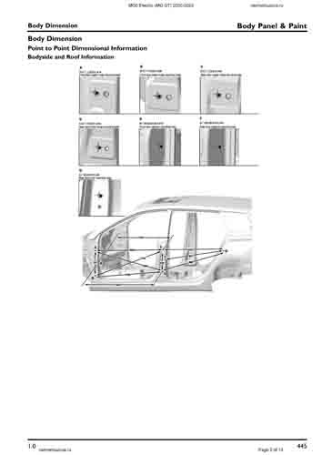 Контрольные размеры кузова для автомобилей MG 5 Electric (MG GT) 2020-2023 из заводского руководства по ремонту кузова, в том числе размеры проемов кузова. Дополнительно приведены сведения о допустимых зазорах кузовных панелей.