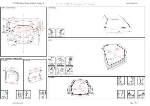 - Геометрические размеры кузова MINI Cooper Coupe (R58) 2011-2015, как проекционные, так и непосредственного измерения, в том числе диагональные размеры проемов кузова и контрольные точки для восстановления геометрии кузова.