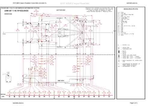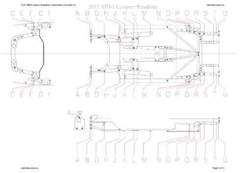 - Геометрические размеры кузова MINI Cooper Roadster (R59) 2012-2015, как проекционные, так и непосредственного измерения, в том числе диагональные размеры проемов кузова и контрольные точки для восстановления геометрии кузова.