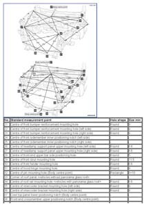 - Из заводского руководства по ремонту кузова, в том числе диагональные размеры проемов кузова и точные места расположения контрольных точек.