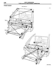 - Из заводского руководства по ремонту кузова, в том числе диагональные размеры проемов кузова.