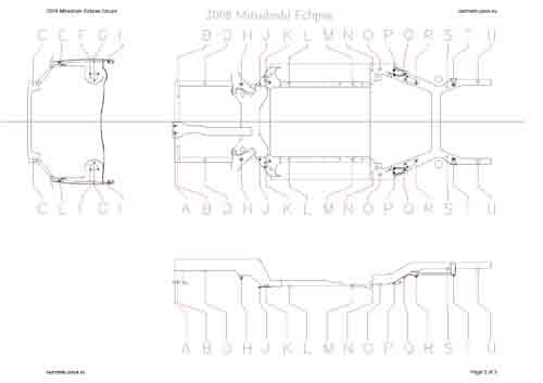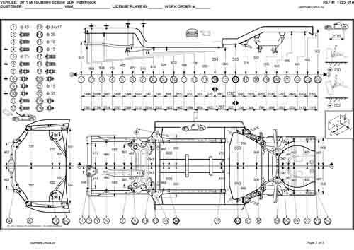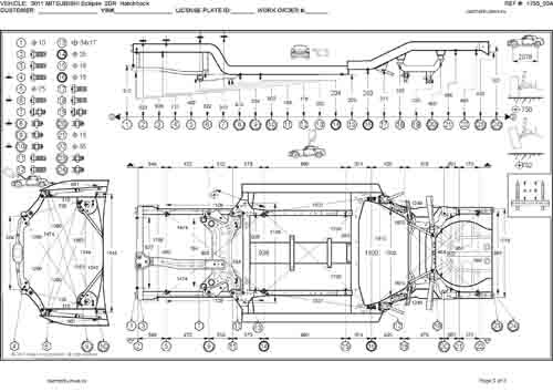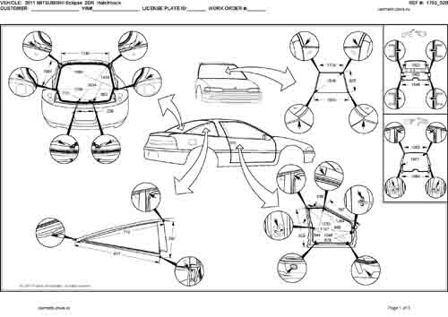 - Геометрические размеры кузова MITSUBISHI Eclipse 2005-2008-2011, как проекционные, так и непосредственного измерения, в том числе диагональные размеры проемов кузова и контрольные точки для восстановления геометрии кузова.