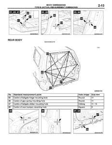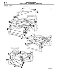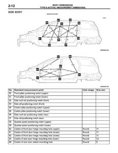- Из заводского руководства по ремонту кузова, в том числе диагональные размеры проемов кузова и точные места расположения контрольных точек.