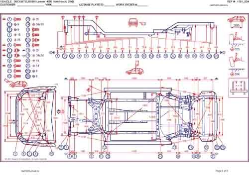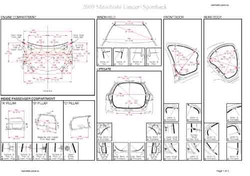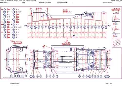 , как проекционные, так и непосредственного измерения, в том числе диагональные размеры проемов кузова и контрольные точки для восстановления геометрии кузова.