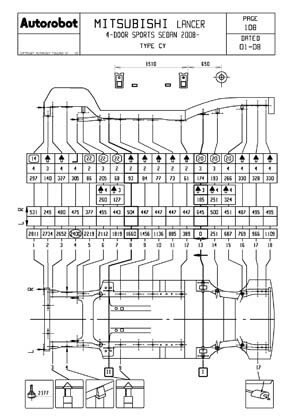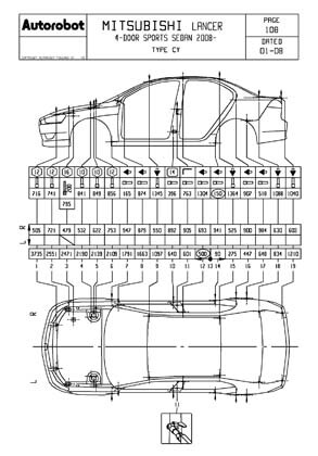 Контрольные кузовные размеры MITSUBISHI Lancer X (CX#, CY#) 2007-2017:
