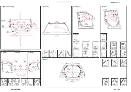 -из заводского руководства по ремонту кузова, в том числе диагональные размеры проемов кузова и точные места расположения контрольных точек.