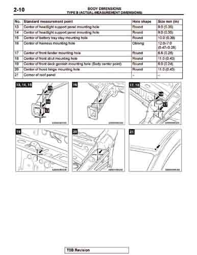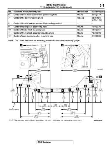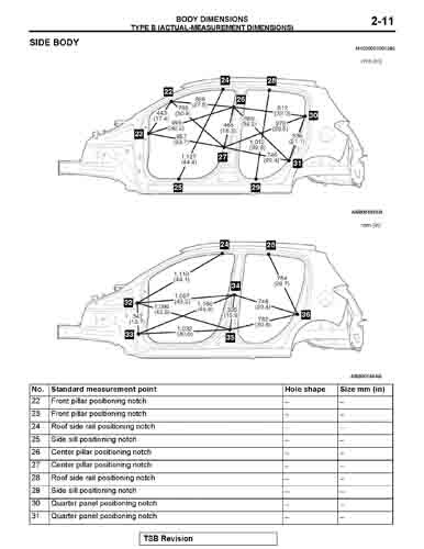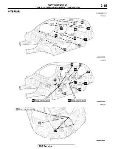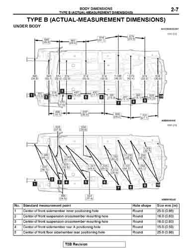 - Геометрические размеры кузова MITSUBISHI Mirage 2012-2015-2019--, как проекционные, так и непосредственного измерения, в том числе диагональные размеры проемов кузова и контрольные точки для восстановления геометрии кузова.