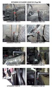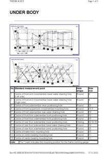 - Проекционные размеры с привязкой к стапелю. Дополнительно приведены цветные фотографии мест расположения контрольных точек на реальном автомобиле.