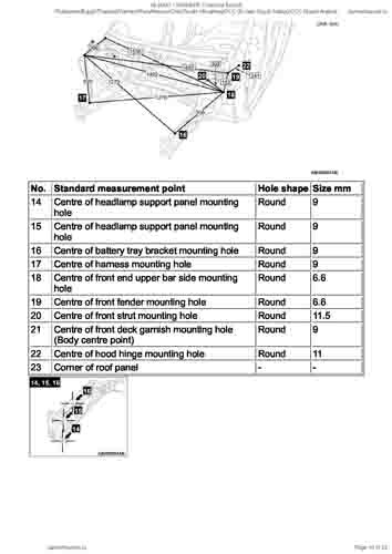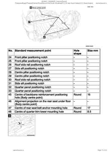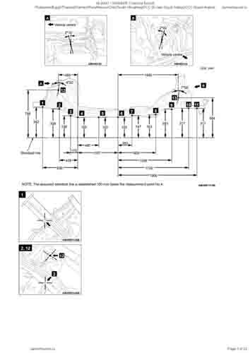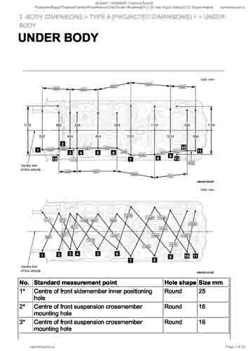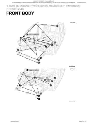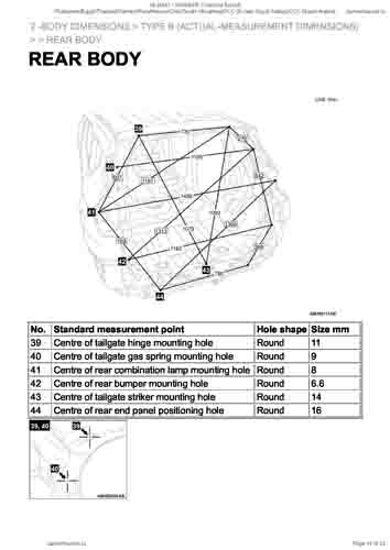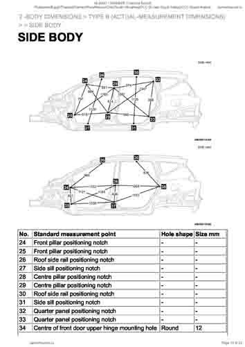 Контрольные кузовные размеры MITSUBISHI Xpander 2017-2025-- из официального руководства по ремонту кузова, в том числе диагональные размеры проемов кузова и точные места расположения контрольных точек.