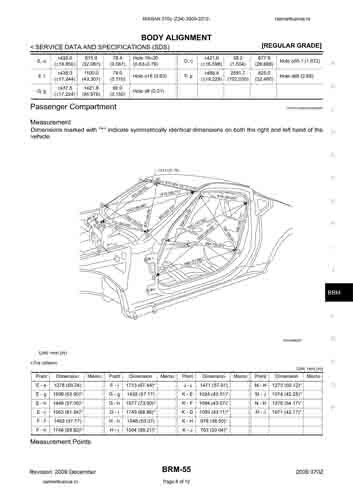 Контрольные кузовные размеры Nissan 370z (Z34) 2009-2012-2020: