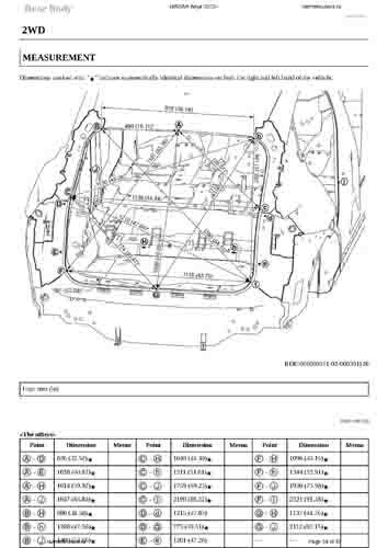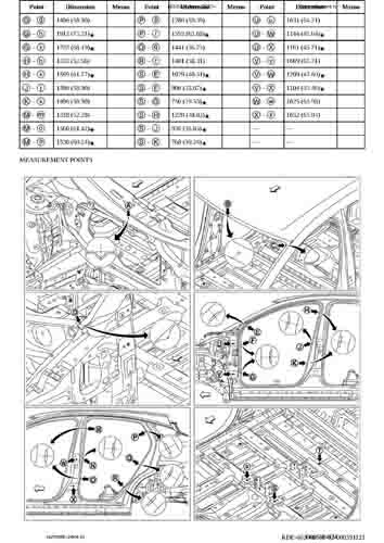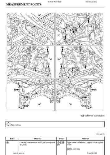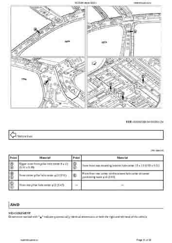 Контрольные кузовные размеры NISSAN Ariya (FE0) 2022-- из официального руководства по ремонту кузова. В том числе диагональные размеры проемов кузова и контрольные точки для восстановления геометрии кузова.