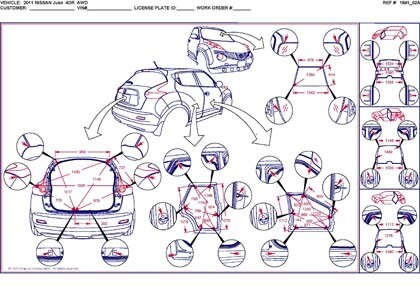 - Размеры кузова автомобилей, как проекционные, так и непосредственного измерения, в том числе диагональные размеры проемов кузова.