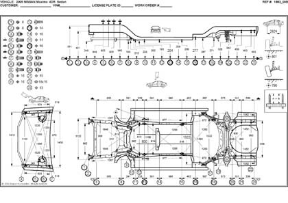 - Размеры кузова, как проекционные, так и непосредственного измерения, в том числе диагональные размеры проемов кузова.
