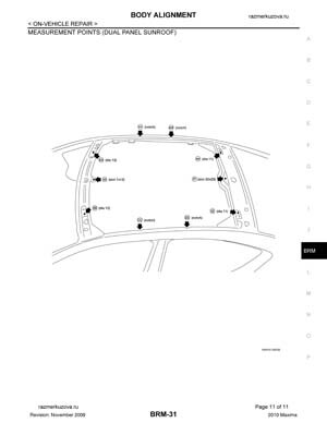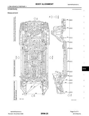 Контрольные кузовные размеры NISSAN Maxima (A35) 2008-2014: