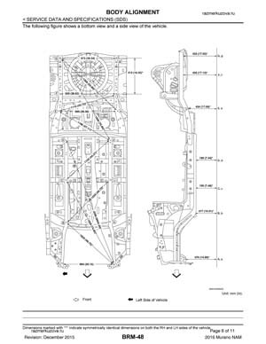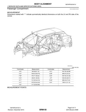 Контрольные кузовные размеры NISSAN Murano (Z52) 2014-2022:
