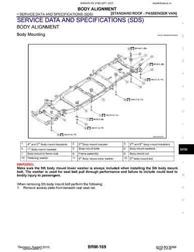 Контрольные кузовные размеры NISSAN NV (F80) (NV1500, NV2500, NV3500) 2011-2021 из официального руководства по ремонту кузова. В том числе диагональные размеры проемов кузова и контрольные точки для восстановления геометрии кузова.