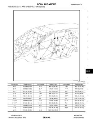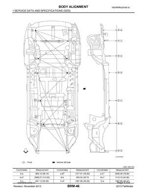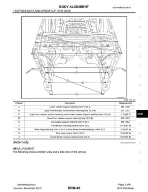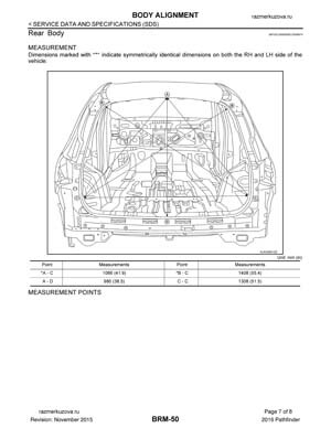 Контрольные кузовные размеры NISSAN Pathfinder (R52) 2013–2021: