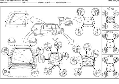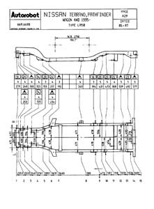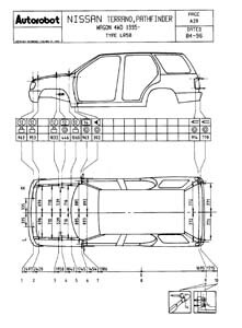 Контрольные кузовные размеры NISSAN Pathfinder/Terrano (R50) 1997-2004: