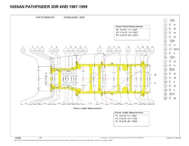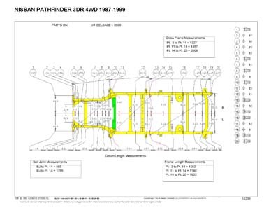 Контрольные кузовные размеры NISSAN Pathfinder/Terrano (WD21) 1987-1997: