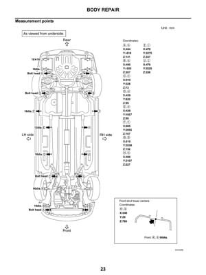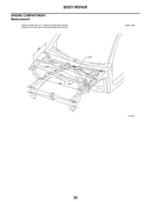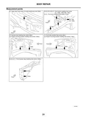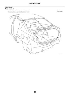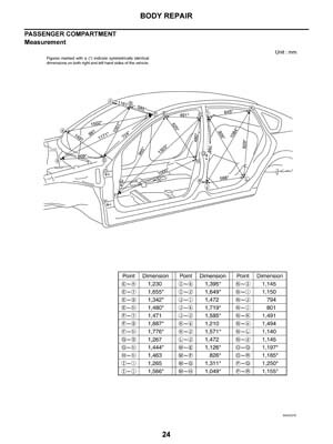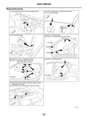 - Из заводского руководства по ремонту кузова Nissan Teana Body Repair Manual, в том числе диагональные размеры проемов кузова и контрольные точки геометрии кузова Ниссан Теана.