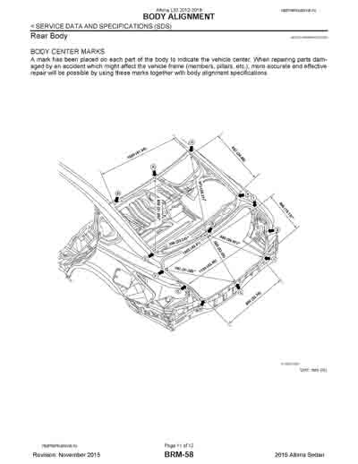 Контрольные кузовные размеры NISSAN Teana (L33) 2014-2020 / Altima (L33) 2012-2018.