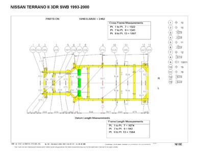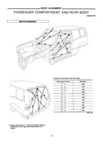 Контрольные кузовные размеры NISSAN Terrano II (R20) 1993-2006: