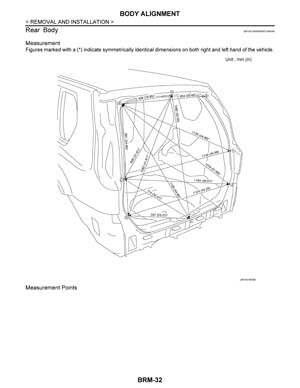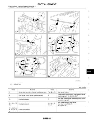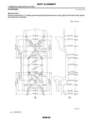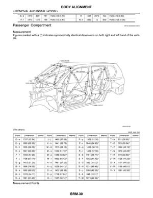 - Из заводского руководства по ремонту кузова Nissan X-Trail Body Repair Manual, в том числе диагональные размеры проемов кузова и контрольные точки геометрии кузова Ниссан Икс Трейл.