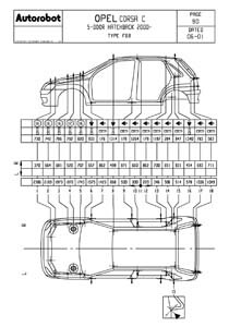 Контрольные кузовные размеры OPEL Corsa C 2000-2006: